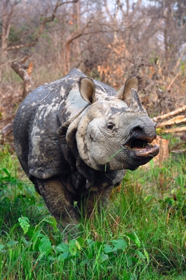 In Nepal leben etwa 500 Indische Panzer-nashörner, die allermeisten davon im Chitwan Nationalpark. Das sind gut 20 Prozent der globalen Gesamtpopulation (Verbreitung nur in Indien und Nepal). Aufgrund der guten Be-dingungen in diesem Nationalpark erholt sich der Bestand ganz lansam wieder, so dass es bereits möglich war, einzelne Tiere auch in andere Nationalparks innerhalb Nepals um-zusiedeln. Im vergangenen Jahrhundert viel dieses urweltlich anmutende Tier beinahe gänzlich dem Jagdfieber einiger weniger Adels-herren zum Opfer und stand kurz vor der Ausrottung. Heute zählt das Panzernashorn zu den bedrohten Tierarten und die Bestände sind streng geschützt.
